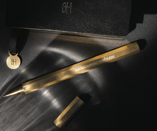 SPIRIT OF INSIGHT, ручка из латуни с гравировкой "записываю победы"