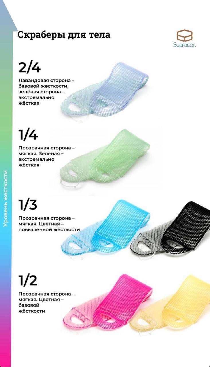 Скрабер Supracor Stimulite® для мягкой и гладкой кожи, представляет собой более мягкую текстуру для тела (торса) и более грубую текстуру для рук и ног.